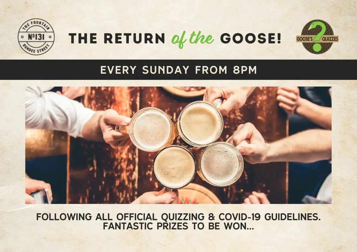 Great prizes to be won! Quiz hosted by Goose’s Quizzes.